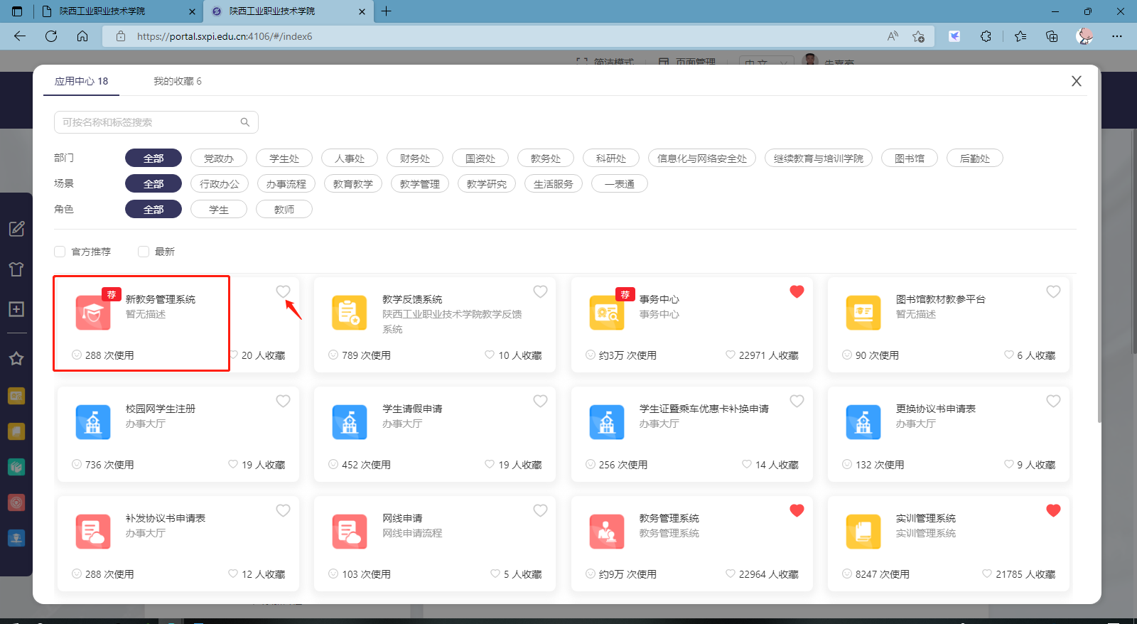 说明:学生登录统一资源门户(https://lyuap.sxpi.edu.cn/),在应用订阅栏点击“+添加”,选择“新教务管理系统”即可跳转进入。