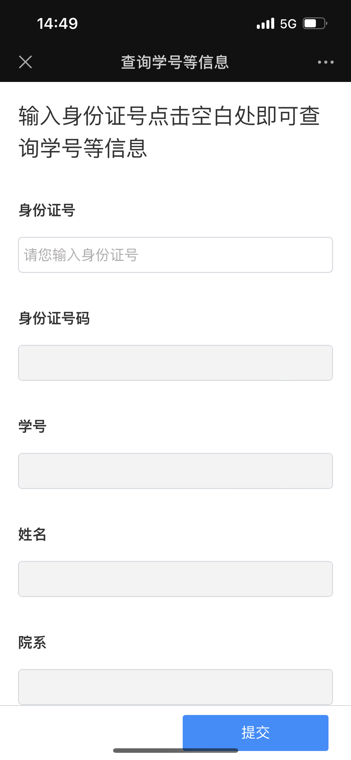 1.访问链接“http://ybt.sxpi.edu.cn:15091/abi/eqf/formpageshow.do?action=show&freelogin=true&id=cdd002d2a33b40daa3871469f20cd3ca”,查询新学号。