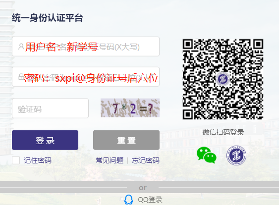 1.访问网址https://xjwxt.sxpi.edu.cn/,用户名:身份证号;初始密码为sxpi@身份证后六位,登录教务管理系统(仅支持电脑操作);