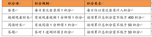 为管控学习过程、保障学习效果,学生登录系统、观看视频、完成测验、进行阅读、发表讨论、记录笔记等一系列与学习有关的活动,均可获得相应的学习积分。具体如下: