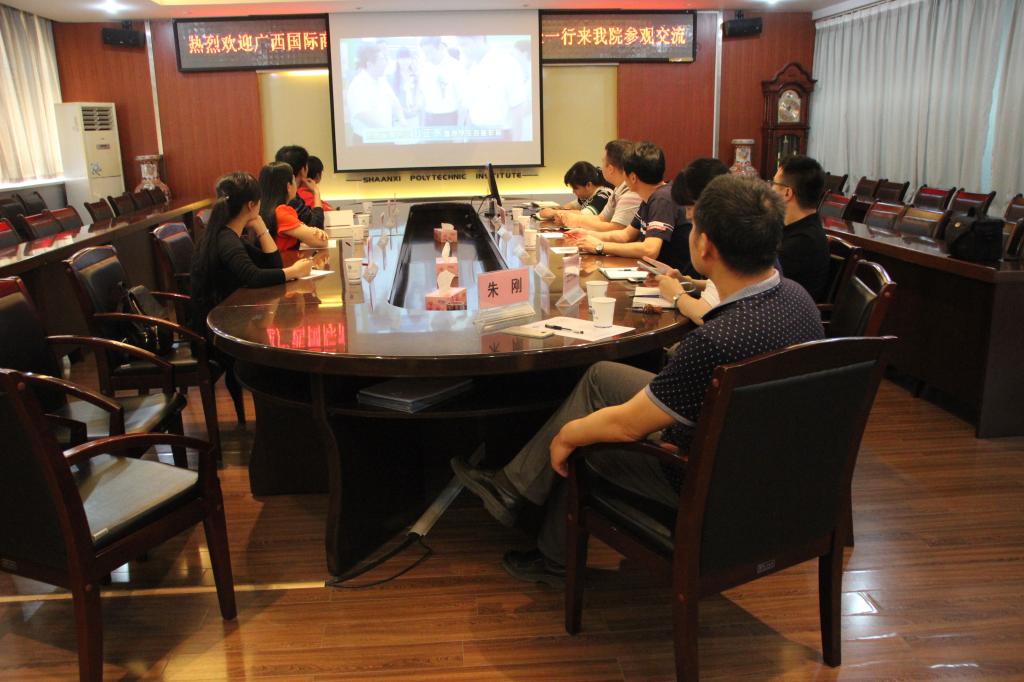 5月23日上午,广西国际商务职业技术学院教务处副处长陆纯梅一行4人来我院交流工作。我院教务处副处长张磊及教务科、实践科等相关部门同志与来宾在崇文南楼第一会议室进行了座谈交流。