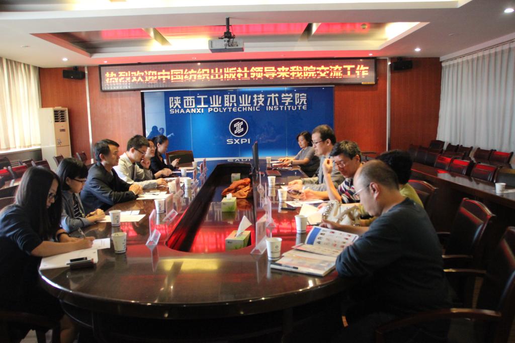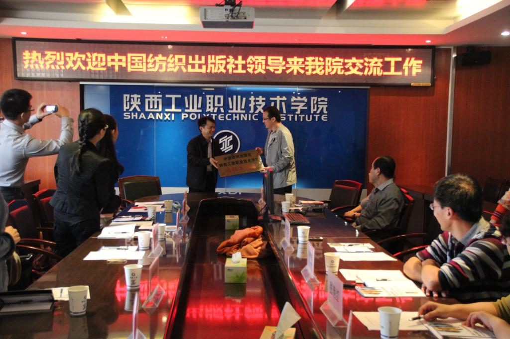 9月24日下午,中国纺织出版社陕西工业职业技术学院出版工作站赠牌仪式在崇文楼九楼会议室隆重举行。出席揭牌仪式的有中国纺织出版社总编辑李炳华、服装图书分社副社长张晓芳、编辑华长印、李春奕、纺织与轻化图书分社编辑范雨昕、图书营销中心副主任杨旭,我院教务处处长、化工与纺织学院院长、服装工程学院院长、材料工程学院副院长、艺术中心主任参加了赠牌仪式。