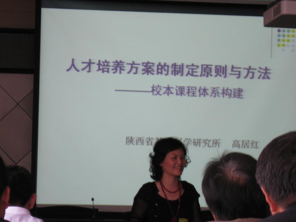 最后,高居红老师介绍了构建“行动体系课程”的原因、必要性,用生动的案例演绎了典型的“行动体系”在课程内容选择的标准以及课程内容排序的标准。高居红老师希望与会教学管理人员以校为本,改变观念,优化课程体系,改造教室,改编教材,创新教学方法,教学手段,教学形式,创新评价方法。