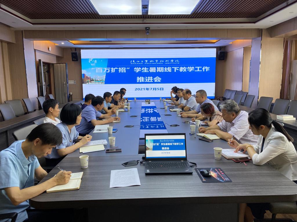 7月5日下午,学校组织召开2020-2021学年第二学期“百万扩招”学生暑期线下教学工作推进会,学校副院长梅创社出席并讲话,教务处、教育教学质量管理中心、各二级学院负责人参加了此次会议。会议由教务处处长张磊主持。